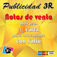 Millar de notas ¼ de carta impresas a una tinta (a elegir) y con folio, sobre papel auto copiante en original y una copia; con el diseño que necesites para tu empresa o negocio.