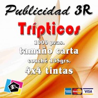 Millar de trípticos carta impresos en offset a 4×4 tintas (totalmente a color por ambos lados), sobre papel couché de 135grs; con el diseño que necesites para tu empresa o negocio.