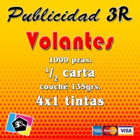 Millar de volantes ¼ de carta impresos en offset a 4×1 tintas (totalmente a color por el frente y en b/n en el reverso), sobre papel couché de 135grs; con el diseño que necesites para tu empresa o negocio.